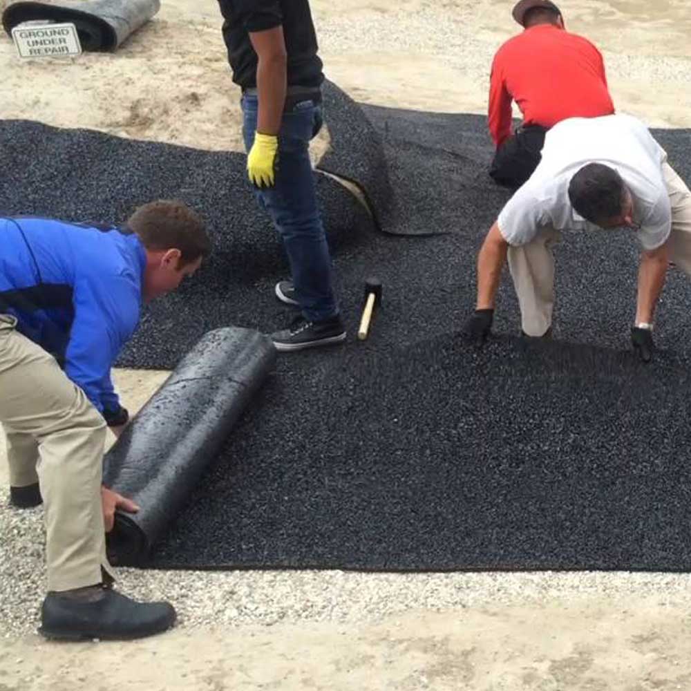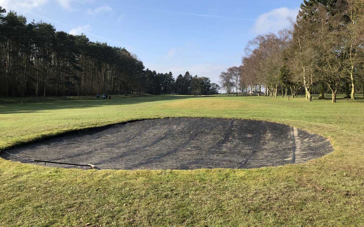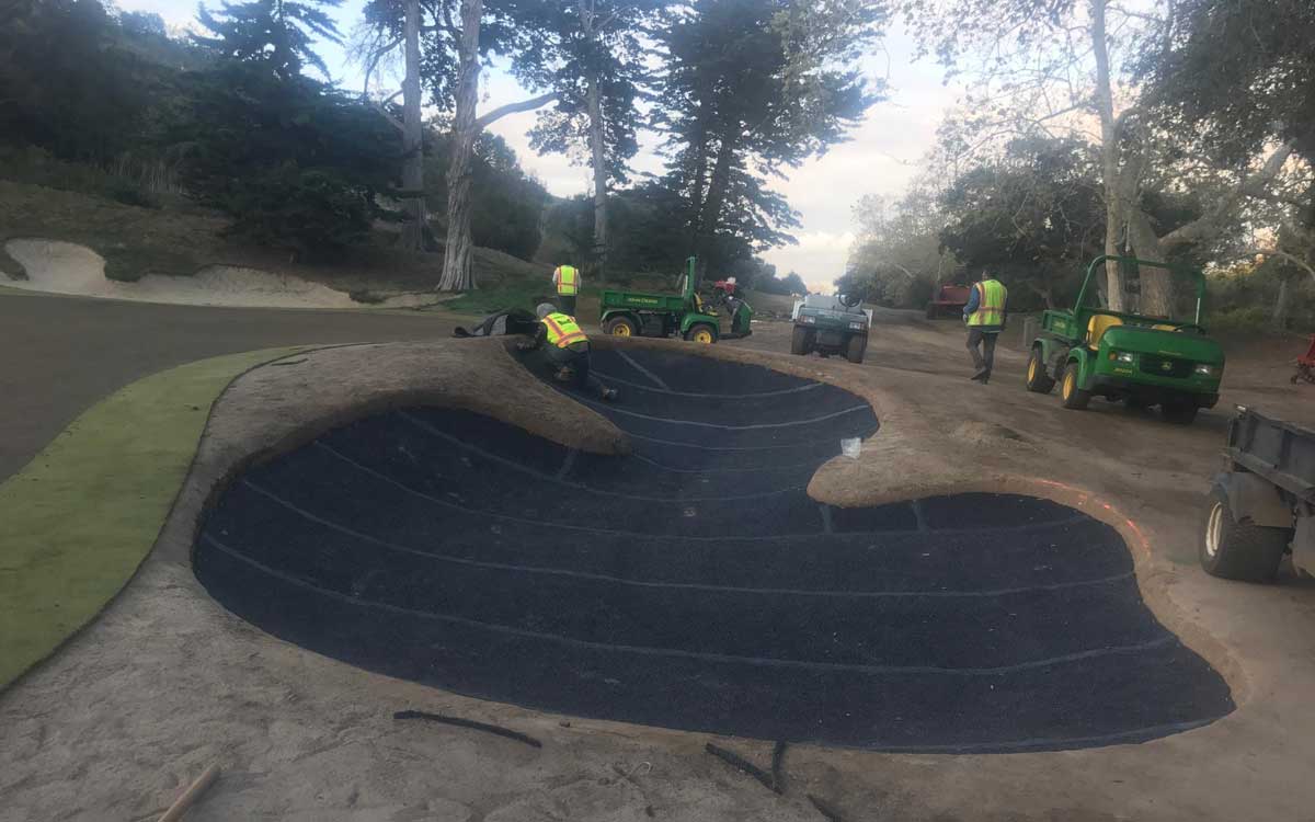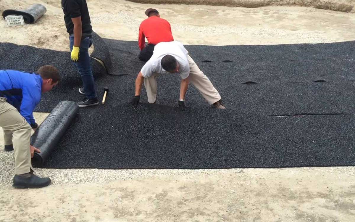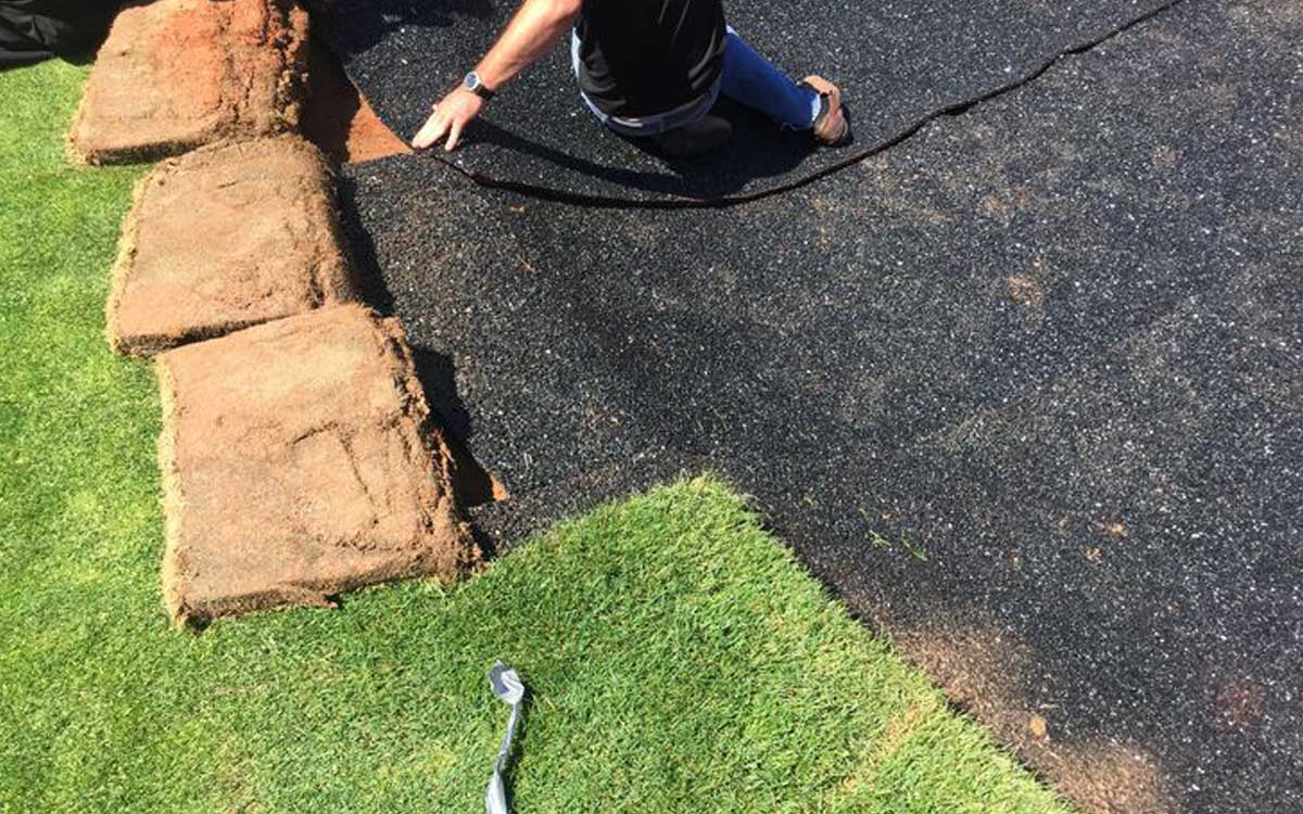 Polylast Bunker Liner può essere posizionato sotto il prato creando un bordo senza soluzione di continuità mentre consente alle radici di prosperare nel materiale poroso.